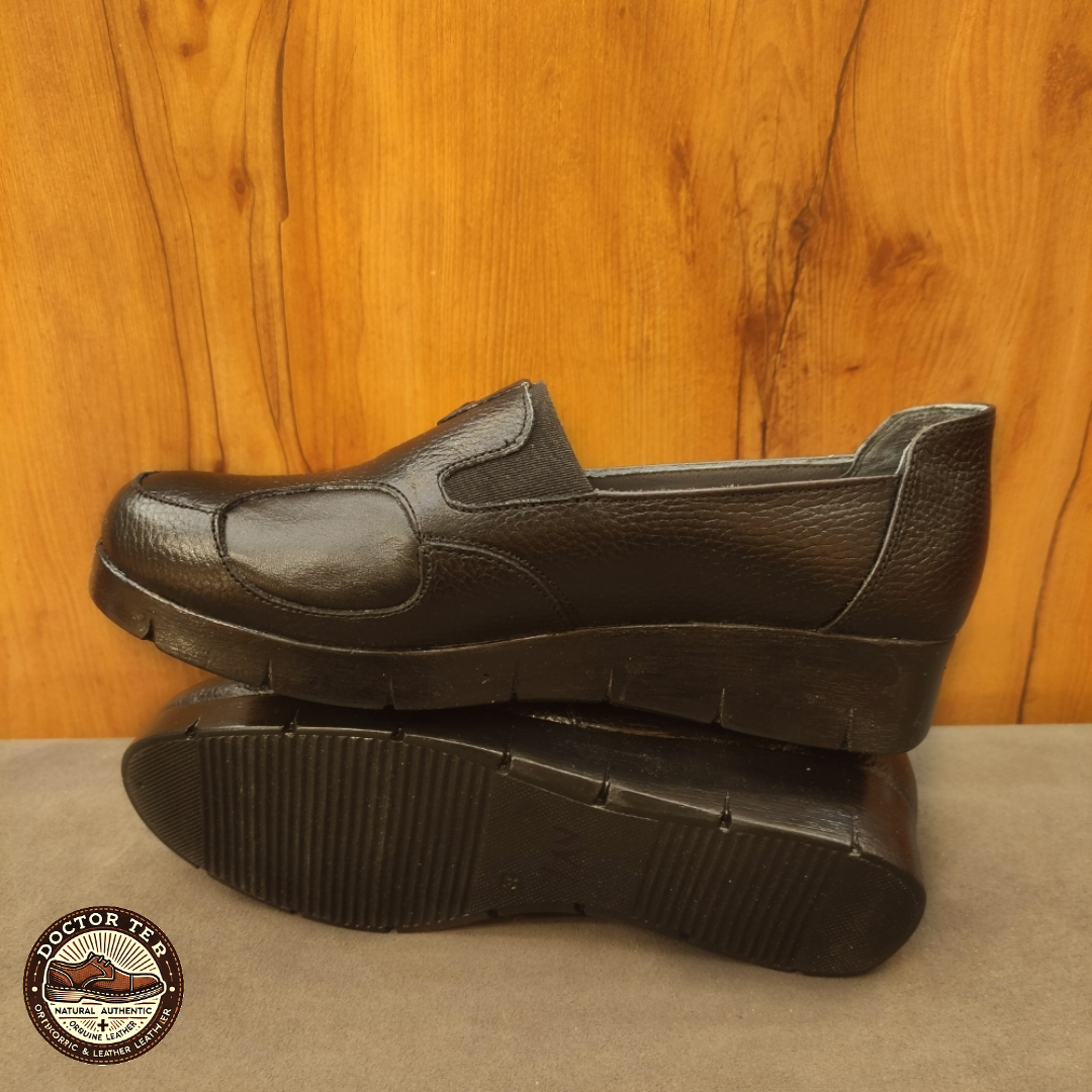 کفش طبی تمام چرم زنانه دارای پد خارپاشنه مناسب برای هالوکس والگوس دکتر فام مدل 187